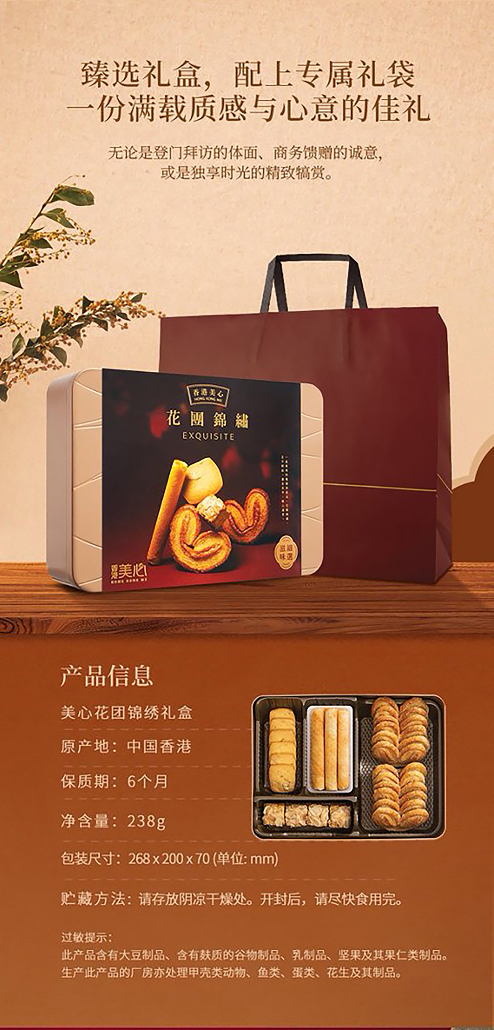 美心花团锦绣糕点饼干礼盒238g