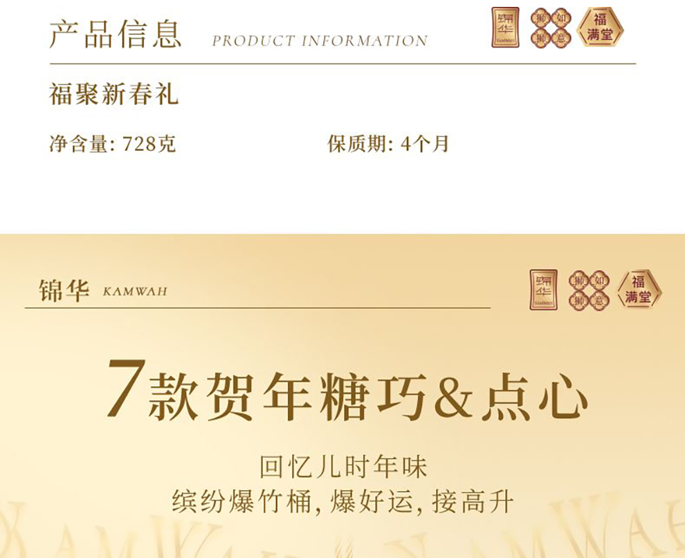 锦华福聚新春礼糕点礼盒728g